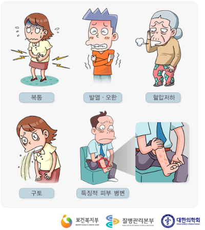 비브리오 패혈증에 감염되면 구토, 설사, 복통 등의 증상이 복합적으로 나타날 수 있습니다. 상처를 통해 감염되면 그 부위에 궤양, 괴사 등이 일어날 수도 있습니다. 손상 부위에 부종, 홍반이 발생하고 이는 급격히 진행되기 때문에 대부분 수포성 괴사가 생길 수도 있습니다.이것은 만성 질환자나 간 질환을 가지고 있는 사람에게는 매우 치명적입니다. 심한 경우 패혈증 쇼크로 사망에 이를 수도 있습니다. 실제로 비브리오 패혈증으로 인한 사망률은 40%에서 50%로 매우 높은 수준입니다. 따라서 신속한 대처가 필수적입니다.