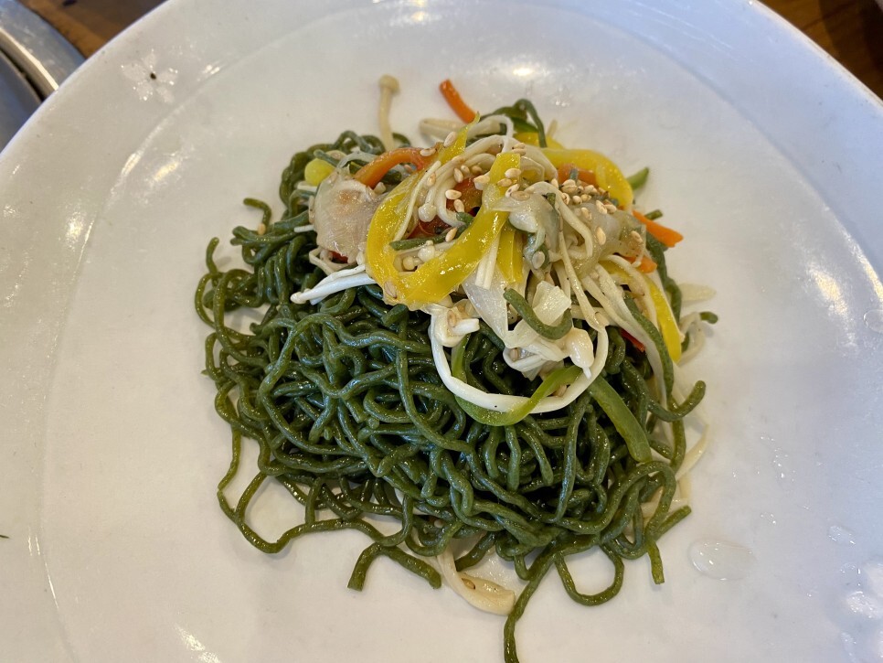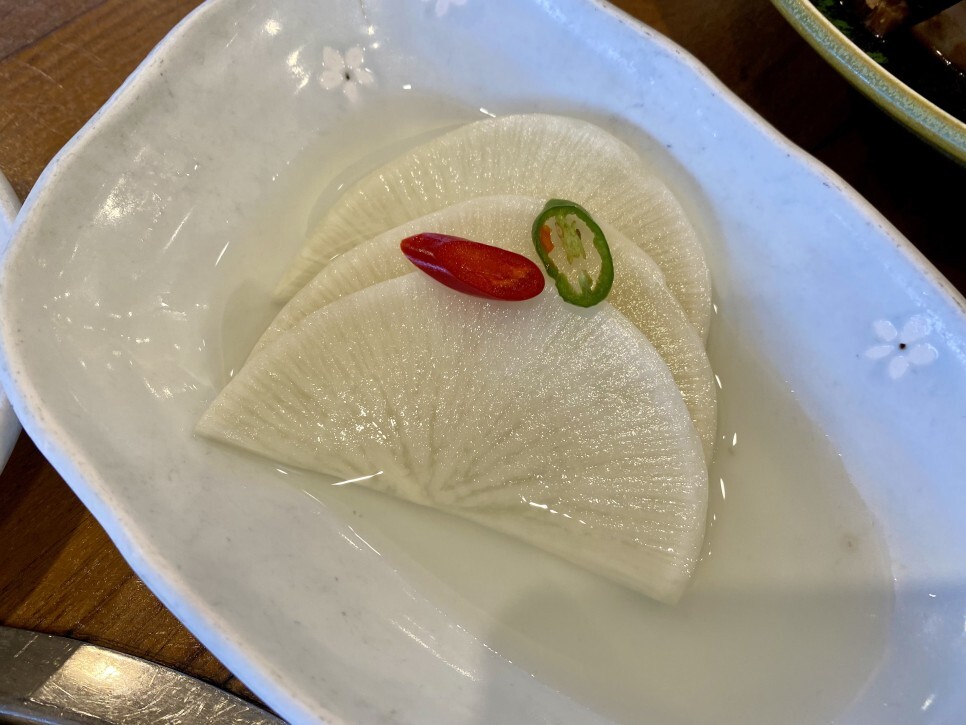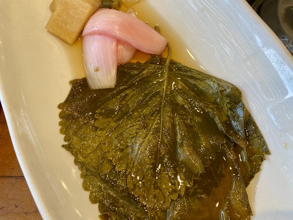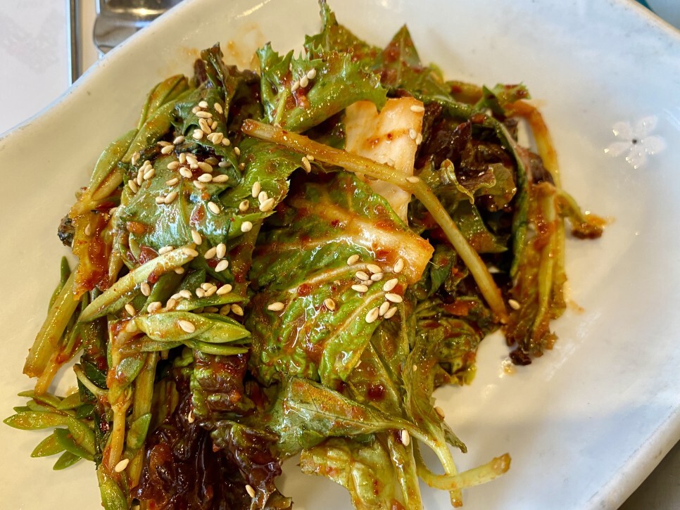 절인 깻잎. 전반적으로 밑반찬이 맛있습니다. 케일 잎도 긁어서 먹었습니다. 양파 다 먹었다