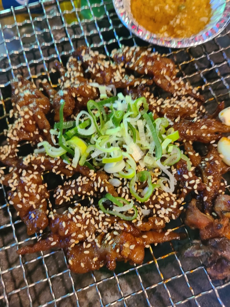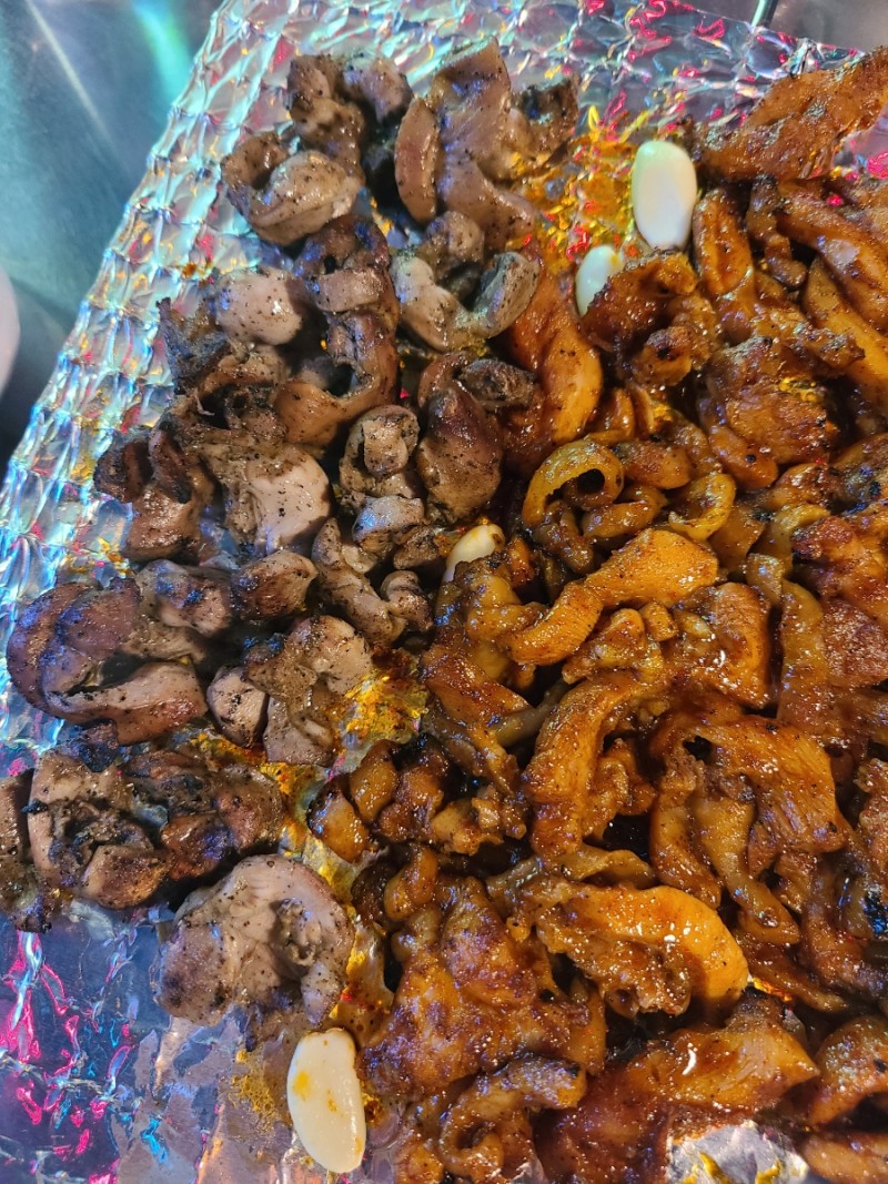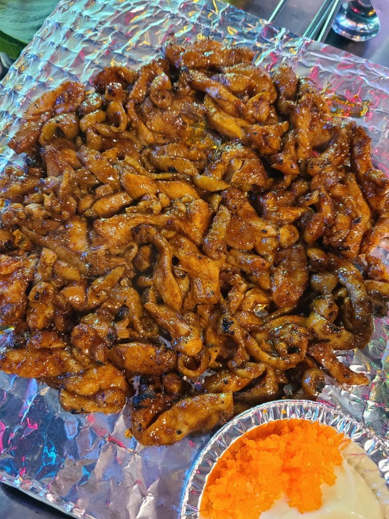 닭다리살로 만든 닭가슴살. 숯불에 구워서 정말 쫄깃하고 맛있었어요.