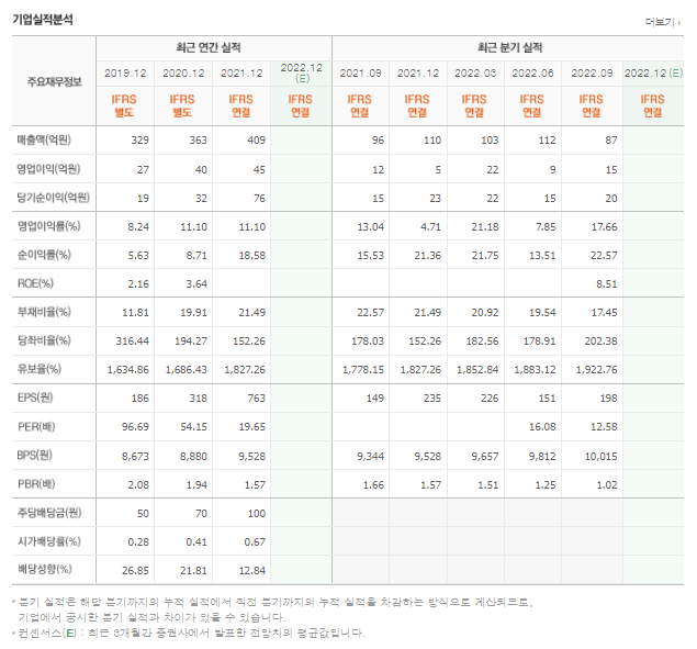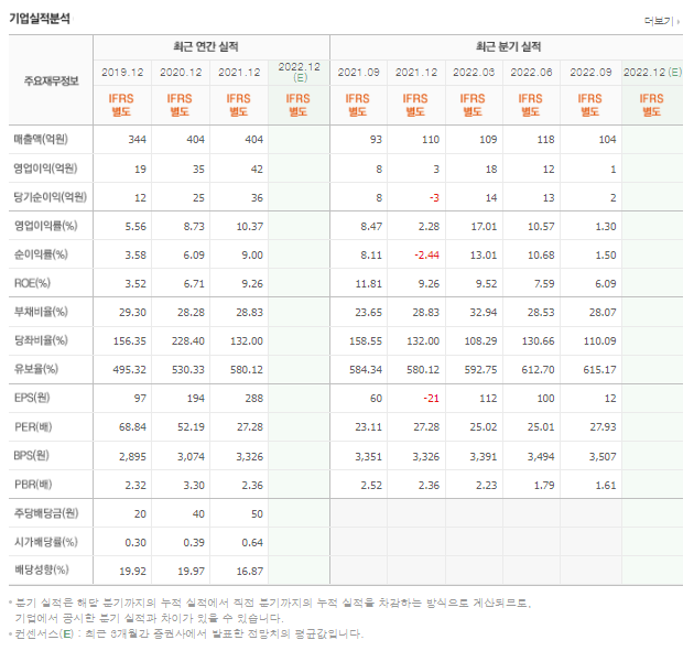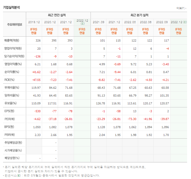 - 시가 총액: 403억 원 (코스닥 1432년위)
