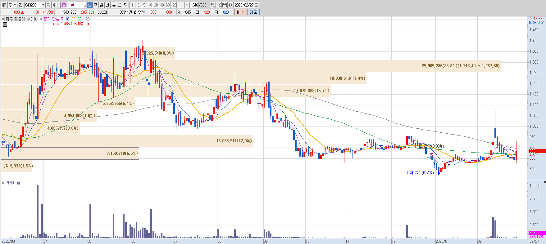 - 52주 최고가: 1,485 / 최저가: 779