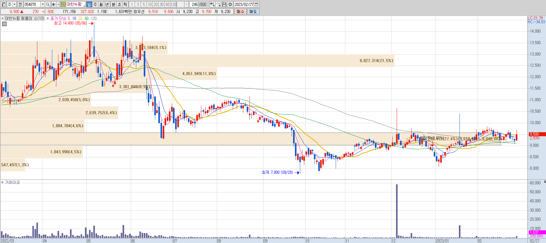 - 52주 고가: 14,400 / 저가: 7,800