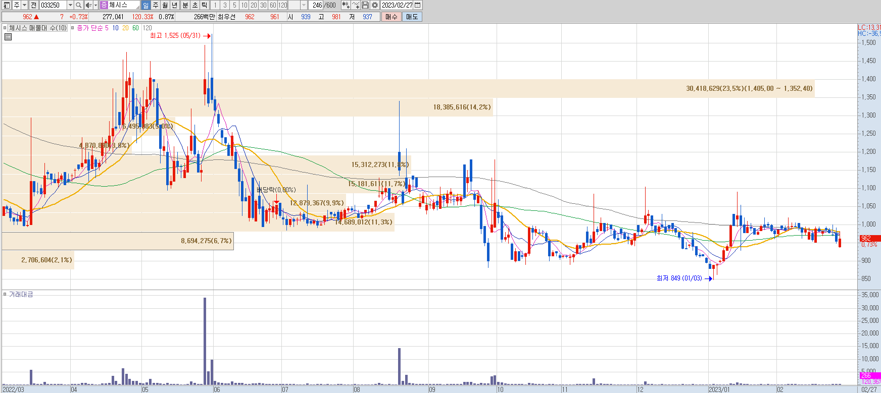 - 52주 최고가: 1,525 / 최저가: 849