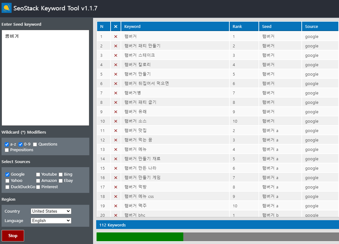 다음은 seostack 키워드 도구라는 프로그램입니다. 이 도구를 사용하면 여러 키워드를 무료로 검색할 수 있습니다.