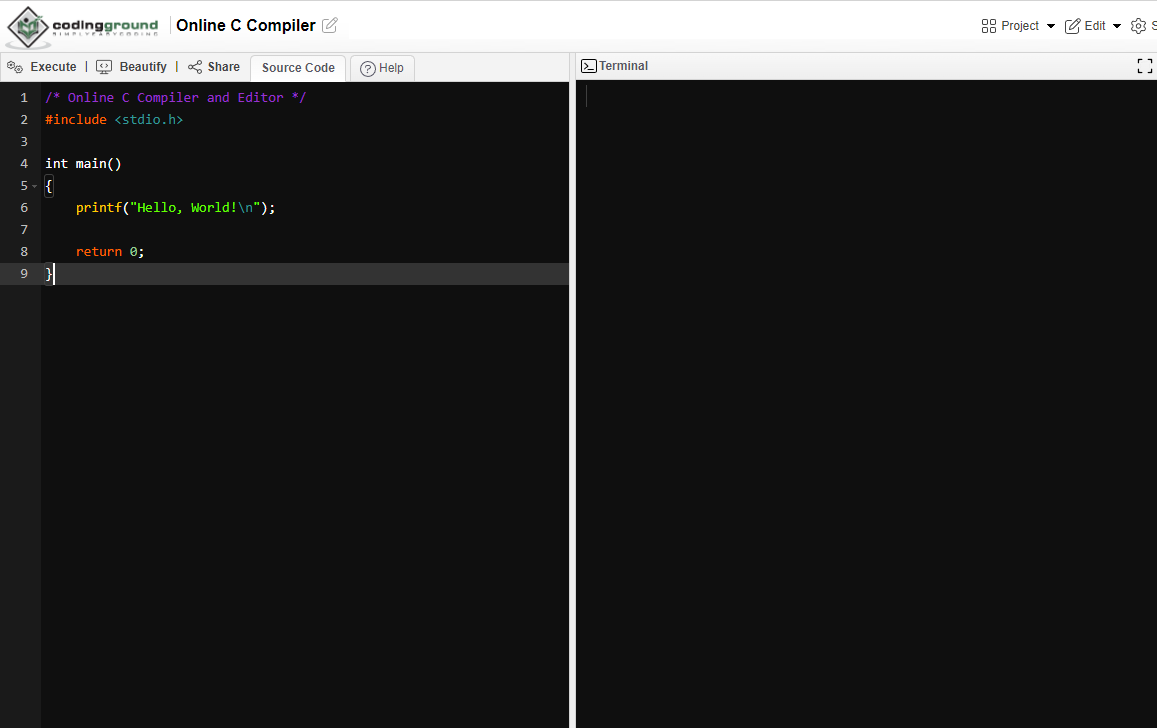 C 온라인 컴파일러 및 인터프리터