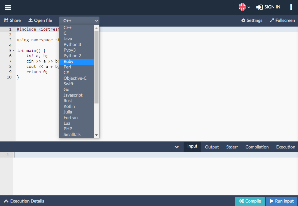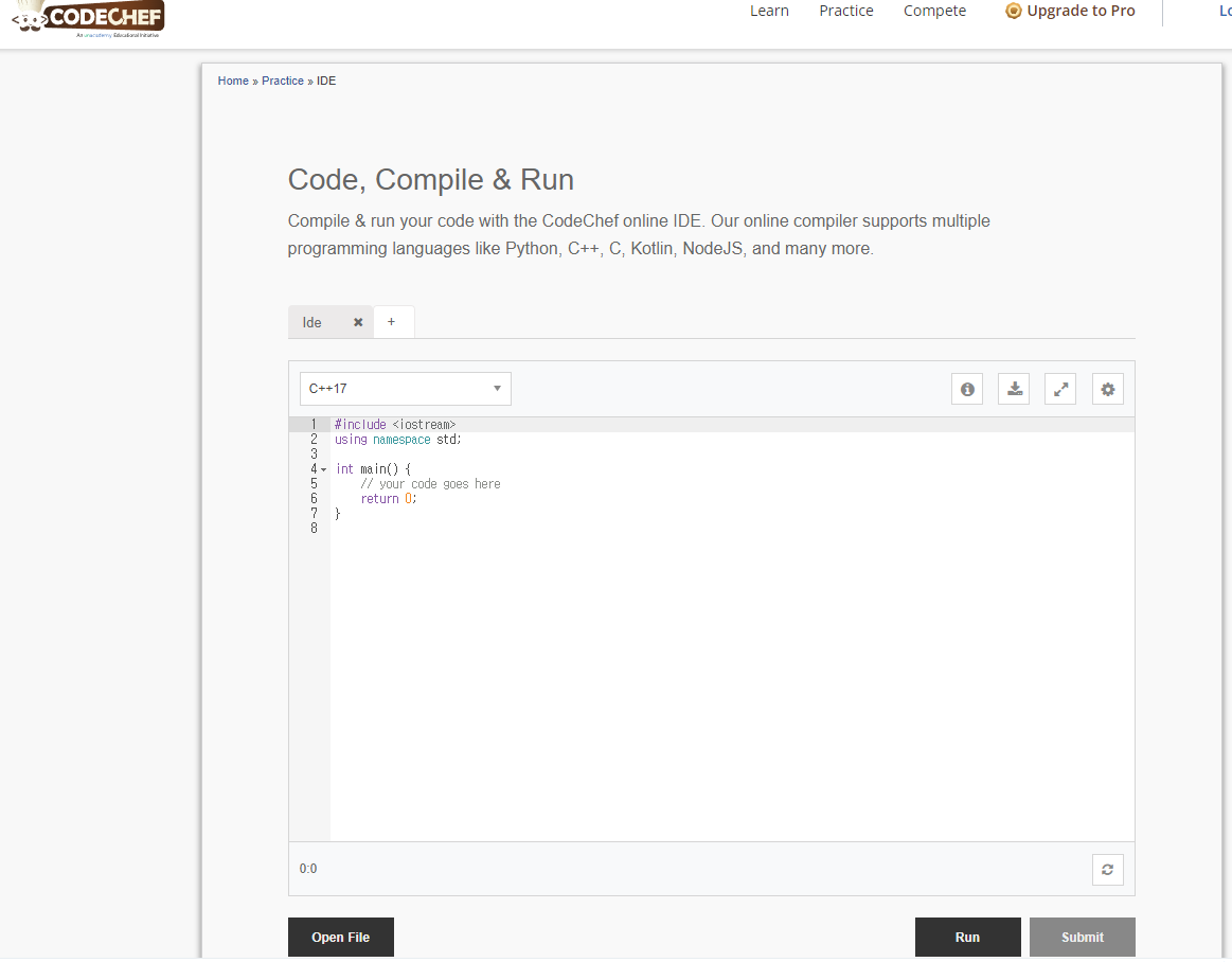 코드를 컴파일하고 온라인 컴파일러와 IDE를 사용하여 실행 | CodeChef에서
