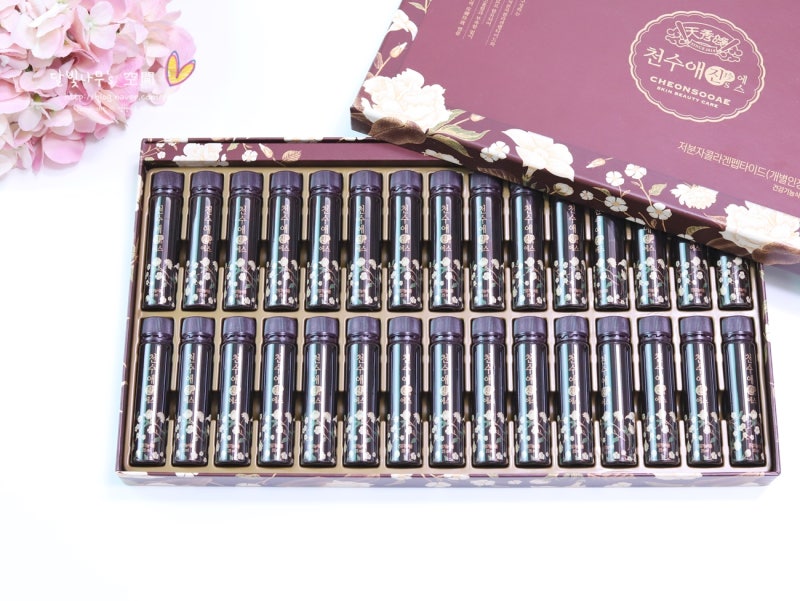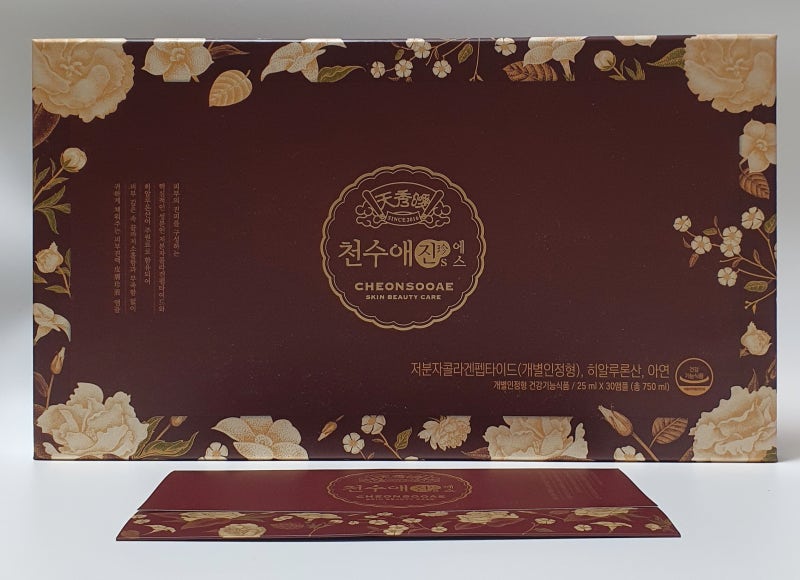 품질보증에 꼼꼼한 천수애진은 식품의약품안전처로부터 피부개선 기능성 인증도 받았고, 펩타이드, 히알루론산, 면역기능에 도움을 주는 성분도 함유하고 있다. 피부 진피의 3대 핵심성분인 히알루론산과 엘라스틴! 모두 한 병에! 매일 가지고 다니며 한 병씩 먹으면 활력을 되찾을 뿐만 아니라 피부 건강도 좋아진다.집에서 맛있는 콜라겐을 먹어 피부를 유지하는 것도 좋다. 휴대가 간편한 우아한 디자인의 콜라겐 보틀이라는 사실을 잊지 마세요. 20세 이후에는 콜라겐 합성이 크게 감소하고 40세 이후에는 나이가 들면서 콜라겐이 “급격하게” 감소합니다. 변함없는 아름다움과 생기를 지닌 배우 윤세아가 춤에 매료되어 모델로 활동 중이다. 실제로 몇 년 전부터 꾸준히 복용하고 있다고 한다. 저도 저분자 피쉬콜라겐을 먹어야 하는데요. 콜라겐을 보충하십시오. 기능성 원료인 저분자 콜라겐 펩타이드는 2주간 피부 수분 섭취량, 4주 섭취 후 진피 밀도 개선 효과가 있습니다. 8주 후 인체적용시험 결과 주름 개선도 확인됐다. 수분 개선도 확인됐다. 총 11가지의 피부 개선 효과가 확인되었다고 합니다. 특히 40~50대 여성은 진피층의 피부 밀도가 높아졌다. 진피층의 90%가 콜라겐으로 구성되어 있기 때문에 진피 밀도를 인체 측정 지표로 사용하여 콜라겐 밀도의 증가를 조사하였다. 앰플타입이라 그냥 드시면 됩니다! 물이 필요하지 않습니다. 액상 타입이라 가루나 젤리보다 먹기 편해요. 매일 저분자량 콜라겐 한 병을 마신다.매일 마실 물병도 가지고 다닙니다 천수애 ::이전 다음 이름 연락처 나이 성별 남 여 개인정보 수집 및 이용에 동의 (상세보기) 회사명 : (주)뉴트리 | 대표자 : 김도- 박기환 | 사업자등록번호: 214-86-80043 | 통신판매업신고번호: 2020-서울송파-1493 주소: 서울시 송파구 백제고분로27길 6-14(삼전- (주)뉴트리랩) 상호명 : (주)뉴트리오투 | 대표자 : 홍순정 | 사업자등록번호 : 519-81-00541 | 통신판매업신고번호 : 제2016-대전중구-0195호 주소 : 대전광역시 중구 6층 602호 대전광역시 중구 지룡로 858 www.cheonsooae .com #천수애진에스 #저분자콜라겐펩타이드#저분자피쉬콜라겐추천#콜라겐건강기능식품#겨울피부가려움증#마시는콜라겐#콜라겐펩타이드#콜라겐헬스 기능성식품#저분자콜라겐 펩타이드추천#콜라겐먹기#저분자콜라겐추천#히알루론산콜라겐